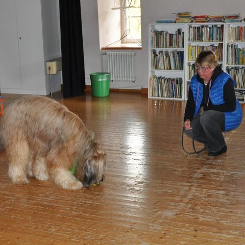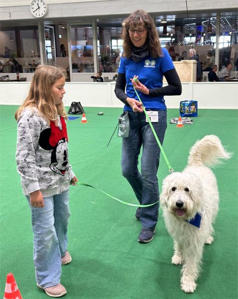 Der Hund, ab 2-jährig, muss über eine gute Grundausbildung und Sozialisierung gegenüber Menschen und Hunden verfügen. Zudem muss er belastbar und neutral sein gegenüber lärmenden, springenden und spielenden Kindern.